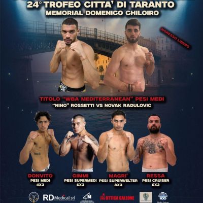 IL 6 DICEMBRE ARRIVA A TARANTO LA BOXE INTERNAZIONALE CON IL 24^TROFEO “CITTA’ DI TARANTO”