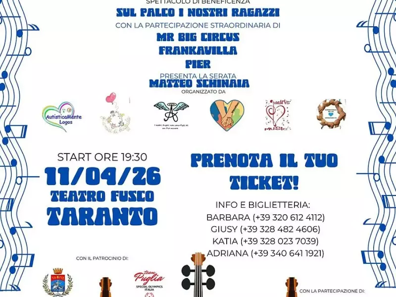 L’11 aprile a Taranto una serata di beneficenza con ospiti…